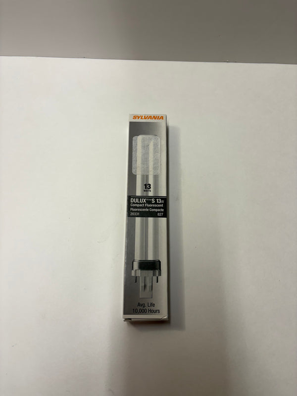 Sylvania Twin Tube Dulux Compact Fluorescent  Part #: CF13DS/827 Base: Gx23 Wattage: 13w Lumens: 800L Temperature: 2700k  Length: 7.1"